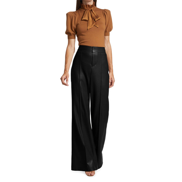 Pantaloni larghi in pelle Pu da donna personalizzati primavera autunno pantaloni Slim Casual a vita alta pantaloni a gamba larga moda donna