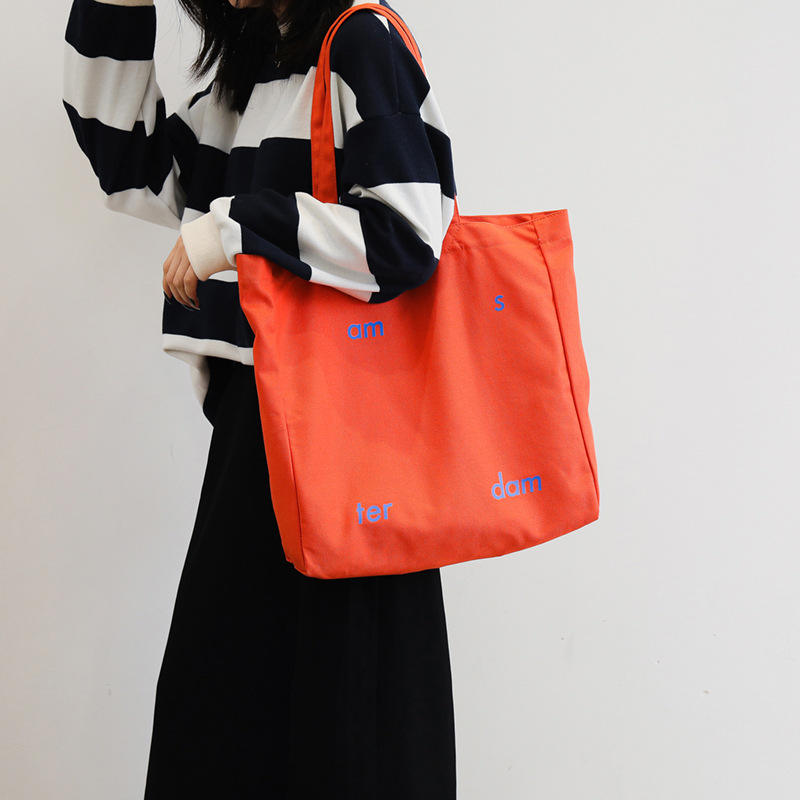 Borsa a tracolla in tela di cotone pesante personalizzata di grandi dimensioni con lettere di alta qualità stampate