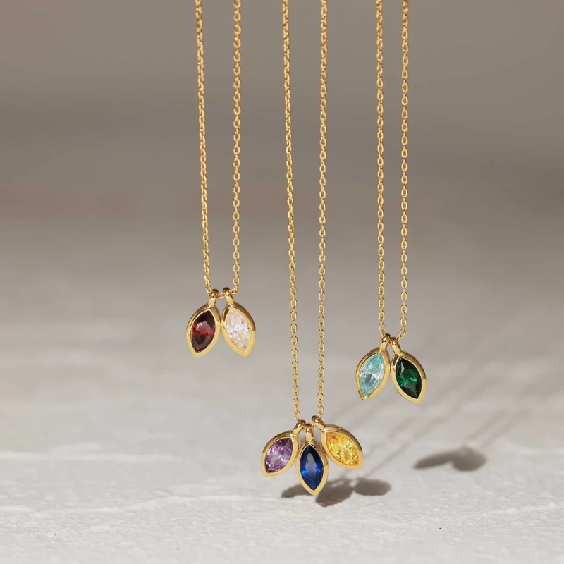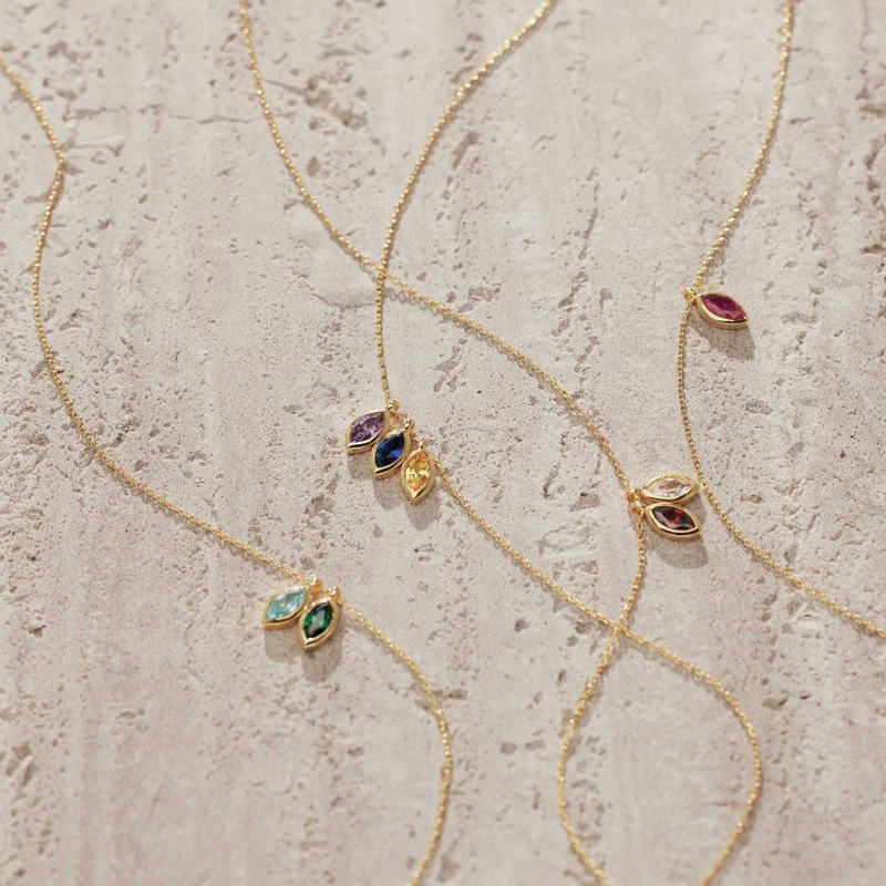 Collana con Ciondolo a Foglia Personalizzato in Zircone, Placcato Oro in Acciaio Inossidabile, Regalo per Anniversario, Famiglia, Compleanno, Nonna, Natale per Lei