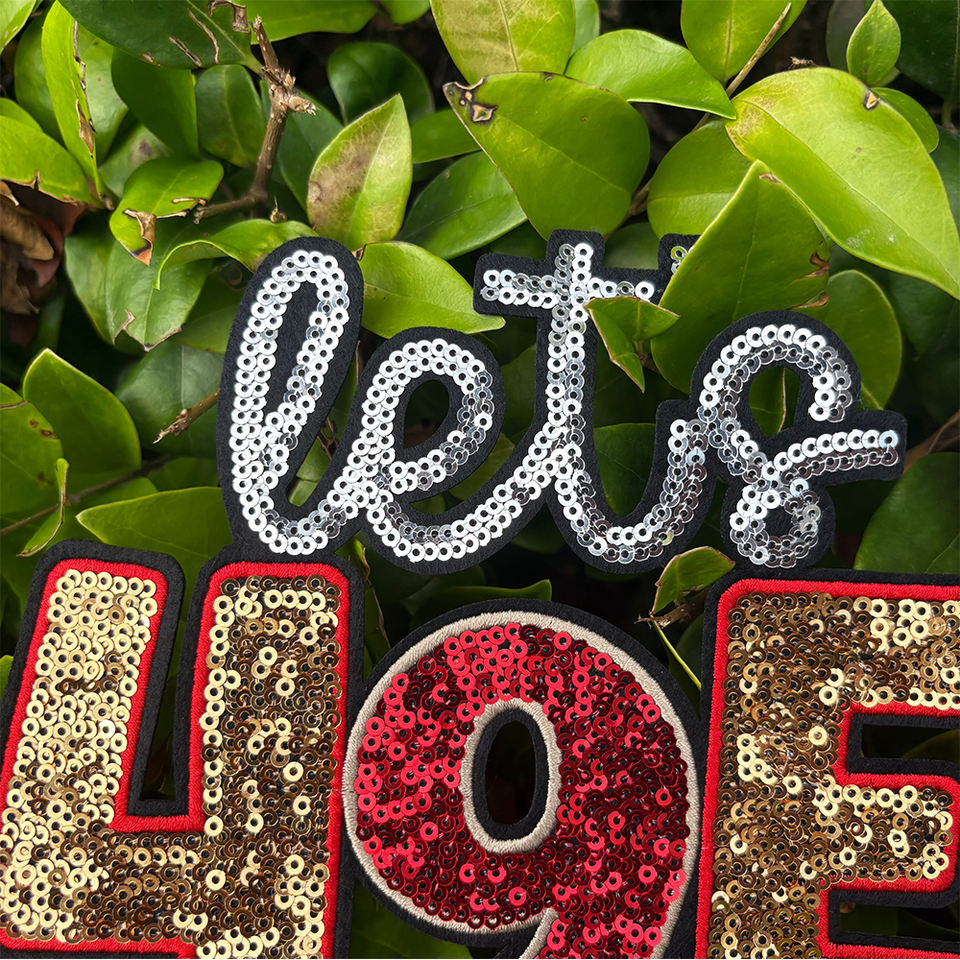 Patch con Lettere in Paillettes Personalizzate 'Let's GO 49 ERS' da Applicare con Ferro da Stiro, Patch Ricamate in Paillettes per Abbigliamento