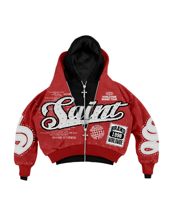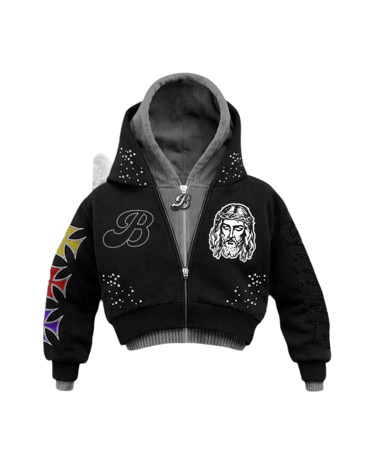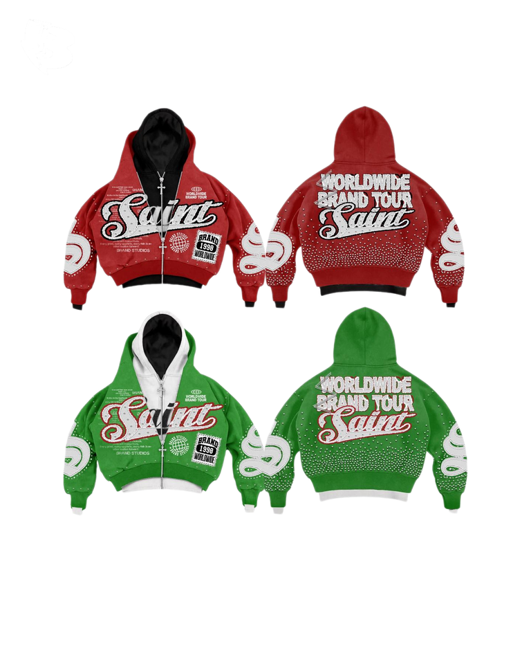 Felpe con Cappuccio per Uomo con Applicazioni di Lettere Personalizzate, Ricamo, Strass, Design Aderente a Doppio Colore con Doppia Zip