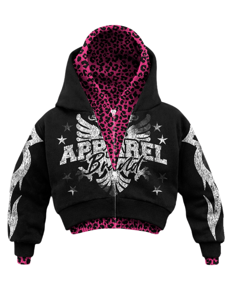 Set Felpa con Cappuccio e Pantaloni a Zampa con Stampa Puff Vintage, Vintage, Y2K, Streetwear, Boxy, Pullover, Zipper-upStile