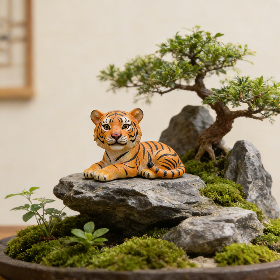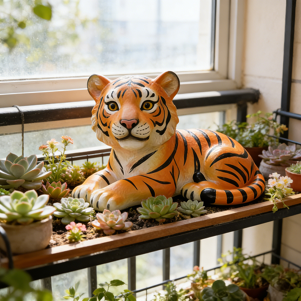 Scultura in Resina Realistica di Cucciolo di Tigre Personalizzata, Adorabile Tigre Cucciolo Sdraiato sull'Erba, Statuetta Animale Artigianale Realistica con Pelliccia Striata