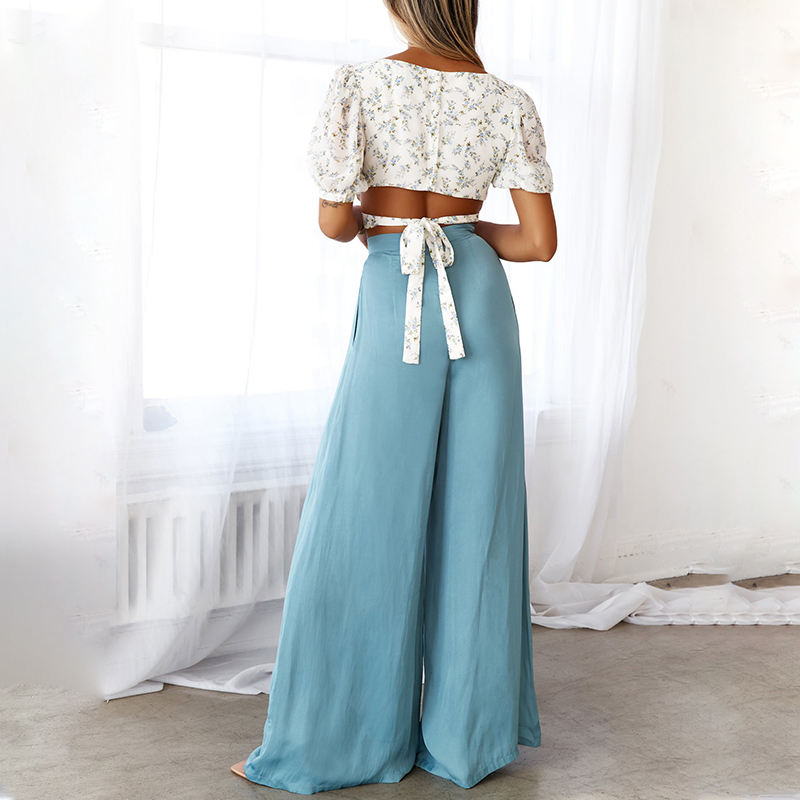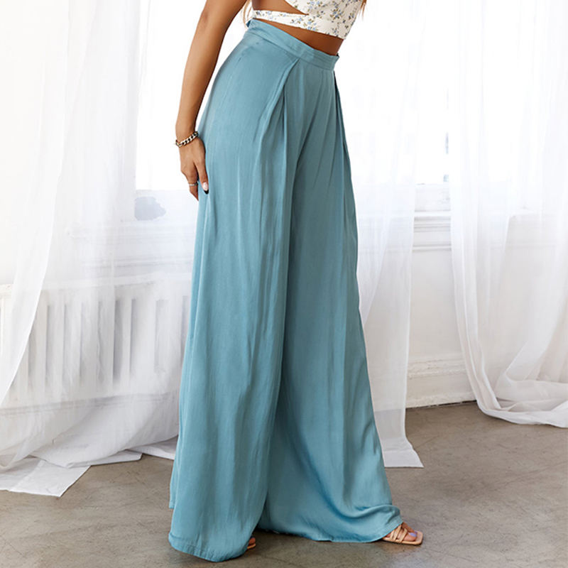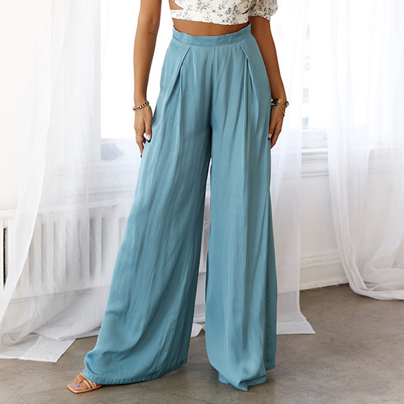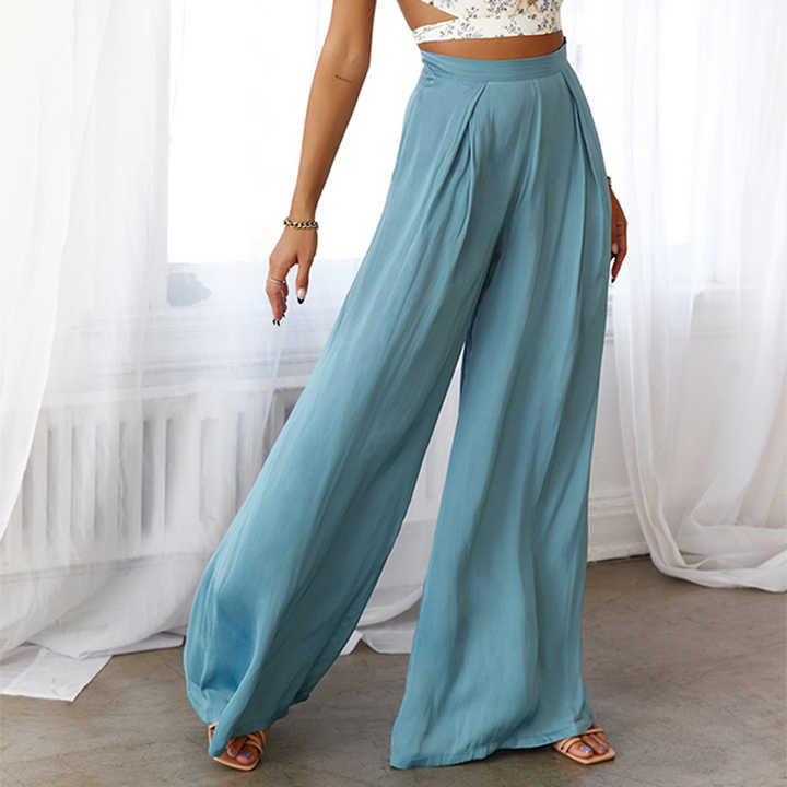 Pantaloni Casual Casual da donna a vita alta blu chiaro personalizzati pantaloni larghi da donna