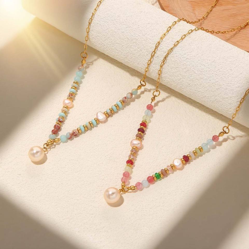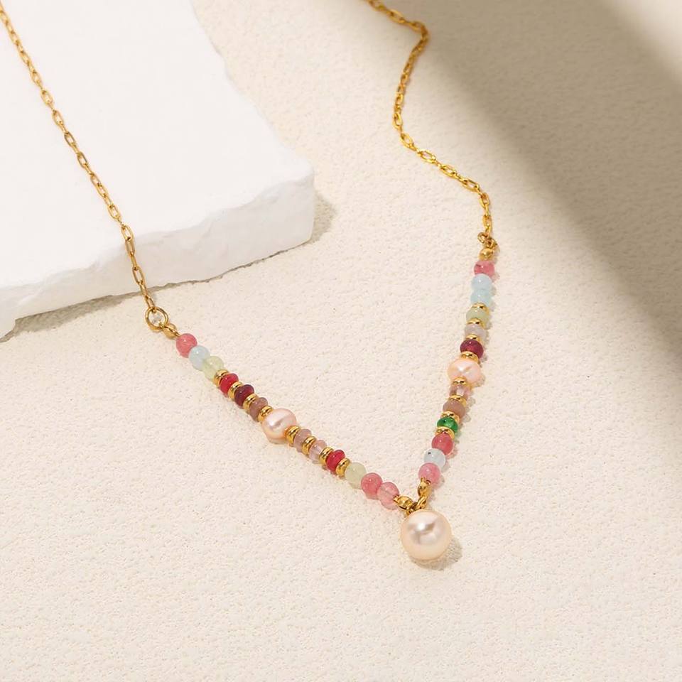 Collana di Perle Personalizzata di Lusso per Donne, Gioielli in Acciaio Inossidabile Colorati Stile Dopamina, Design Unico di Nicchia, Moda Vacanziera