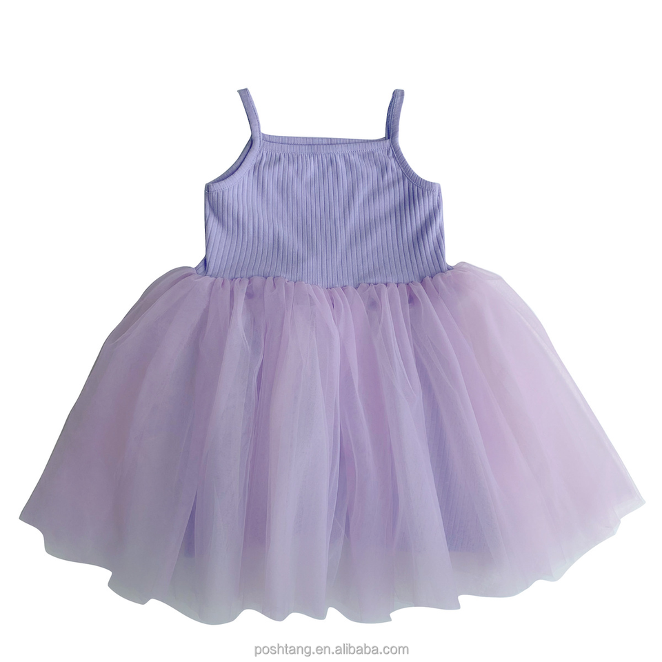 Custom Little Baby Girl Tutu Dress Solid Soft Mesh and Knit Cotton Short Sleeve Dress with Lining for Girls