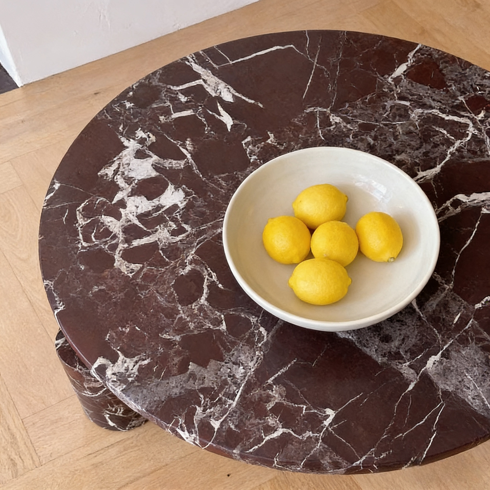 Tavolino da Salotto Personalizzato in Marmo Rosa Levanto, Arredamento di Lusso Nordico, Scrivania in Pietra, Tavolini da Caffè Bassi in Marmo Rosso Viola Scuro