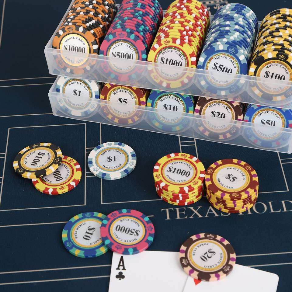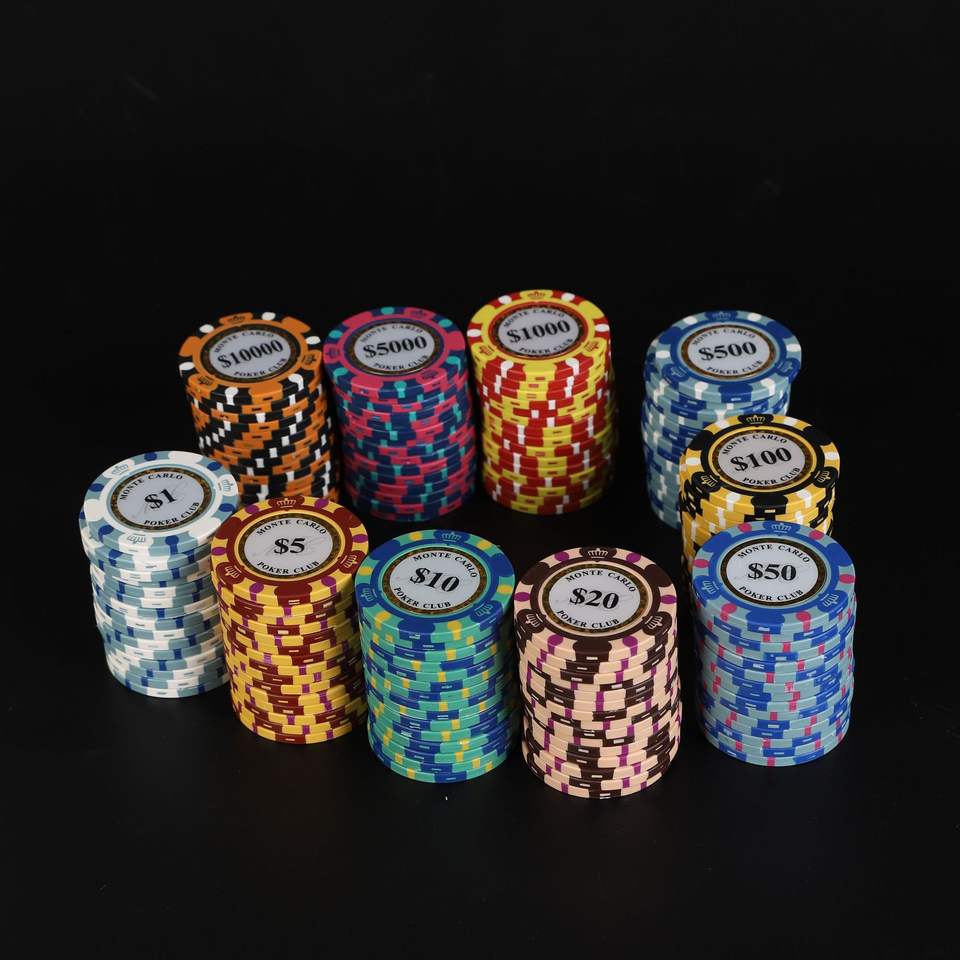 Fiches da Poker da Casinò Monte Carlo Tricolore, 14g 40mm, con Logo Personalizzato, Inserto in Metallo, Resistenti - Fornitore All'ingrosso