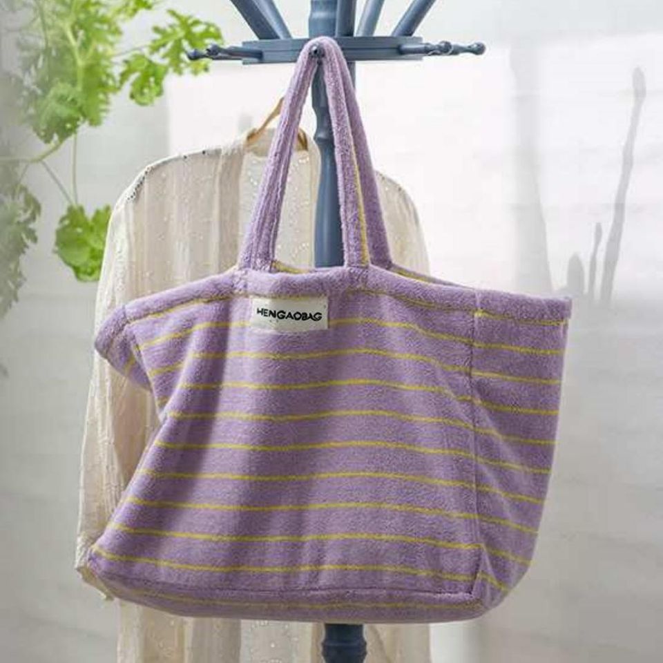 Materiale in spugna da asciugamano: Il materiale in spugna da asciugamano offre una superficie morbida e assorbente, ideale per uso in spiaggia e durante i viaggi.