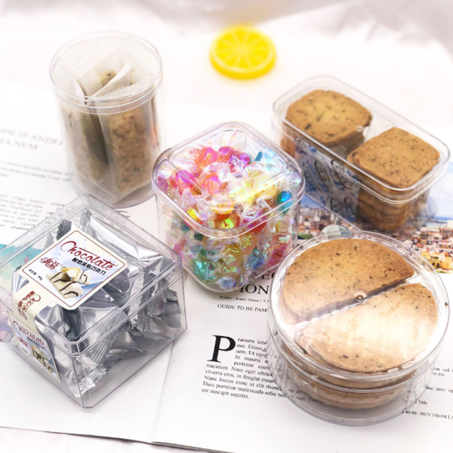Custom Logo 800ml 28oz Clear Round PS Plastic Box for with Lid for Biscuit Snack Sugar Pastry Packaging Container