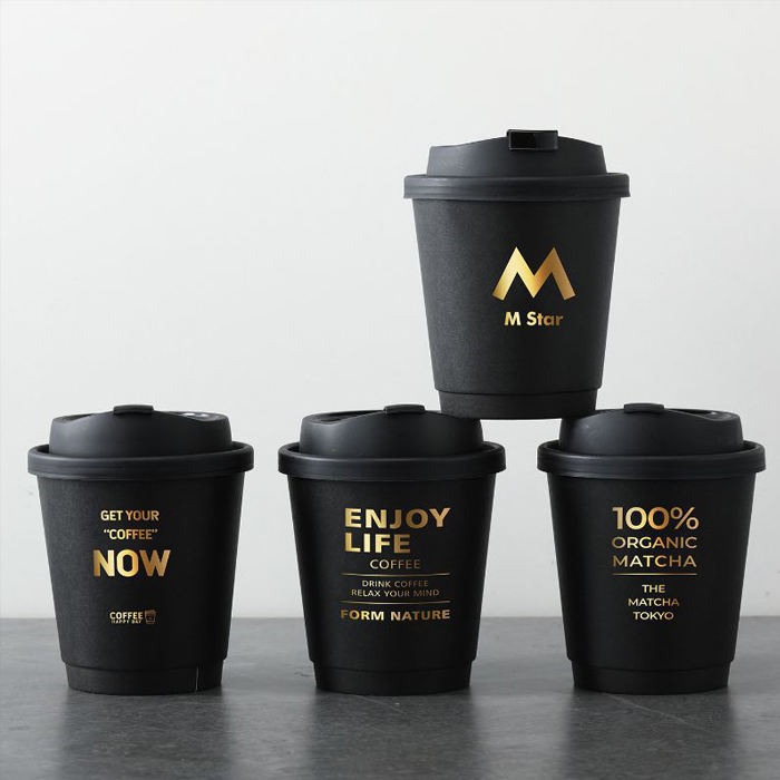 Bicchieri di Carta Neri a Doppia Parete con Coperchi, Personalizzabili con Logo, 8oz 10oz 12oz 16oz, Usa e Getta con Stampa in Lamina d'Oro per Caffè da Asporto