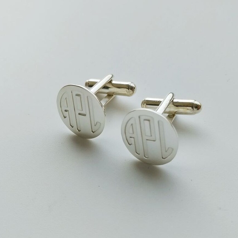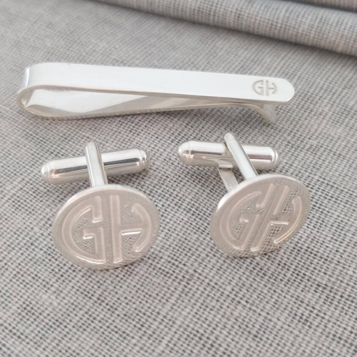 Logo personalizzato 925 in argento sterling inciso gemelli da uomo gemelli personalizzati gemelli da uomo in bianco da uomo e Set di Clip da cravatta
