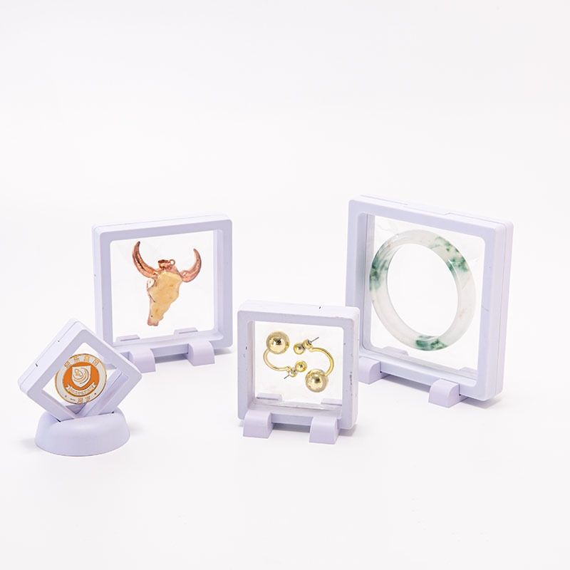 Logo personalizzato 9x9cm 3D scatola galleggiante cornice rotonda Base moneta espositore per gioielli organizzazione scatola ombra sacchetti di imballaggio espositore