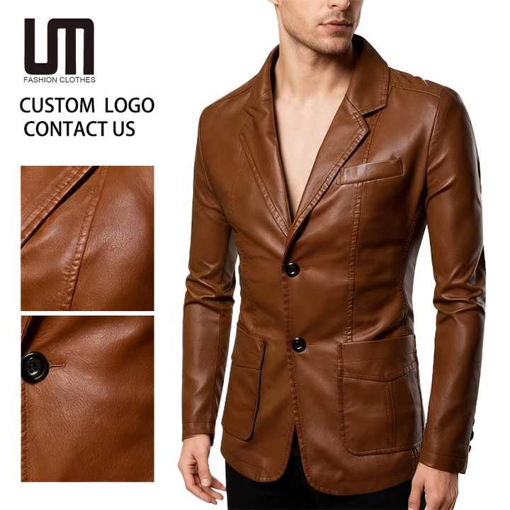 Custom Logo Autumn Winter Wholesale Fashion Men Clothes Casual Plus Size Business Leather Suit Coat Pu Blazers Jacket
