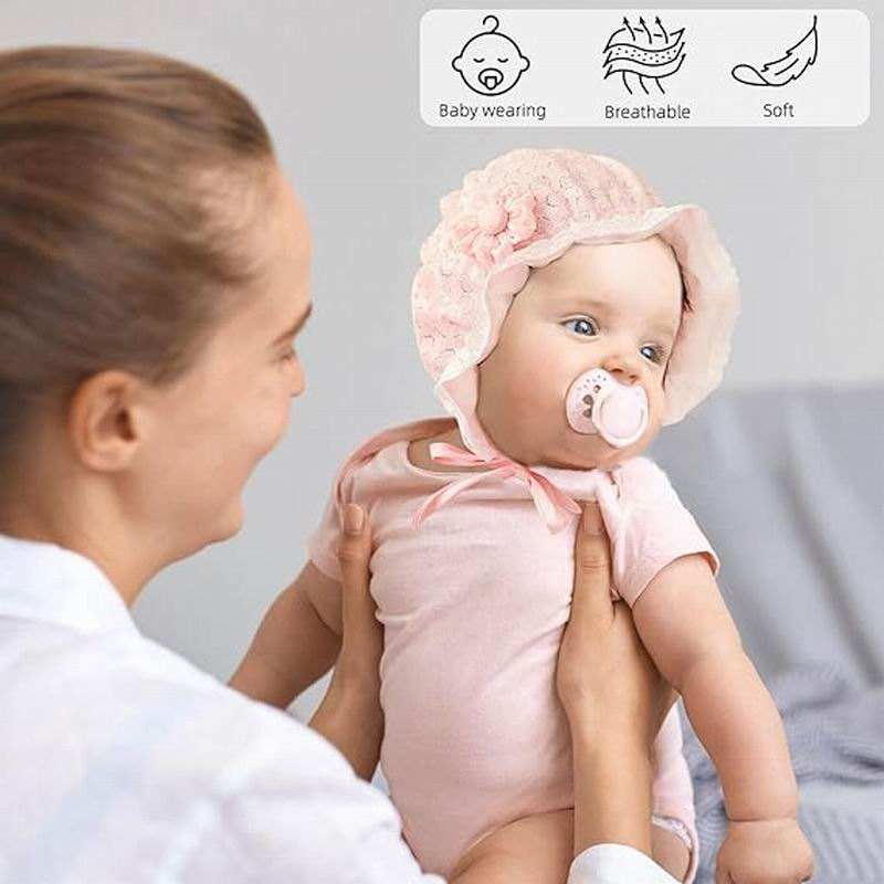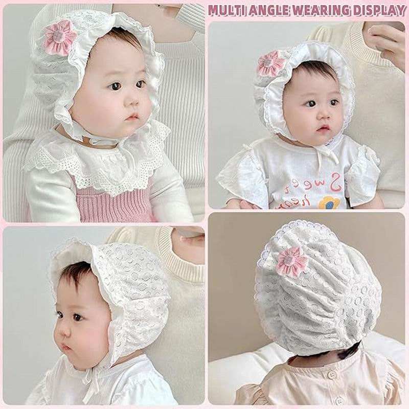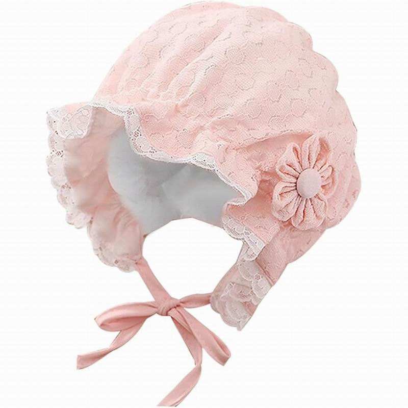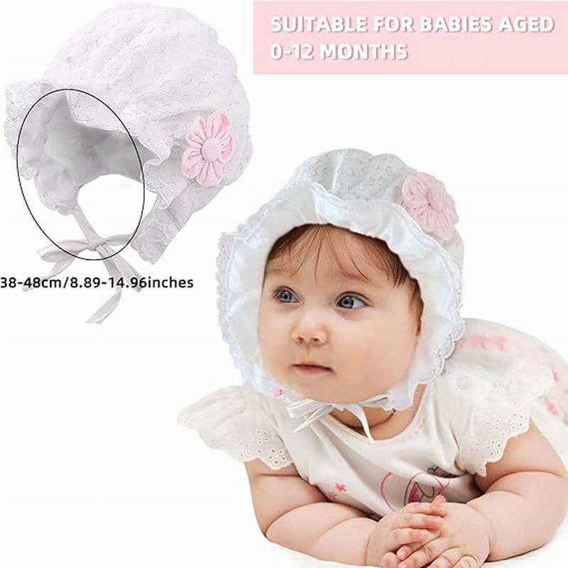 Cappellino per Neonata con Logo Personalizzato, Bordo in Pizzo, Graziosi Fiori, Berretto Primaverile ed Estivo per Neonati e Bambini