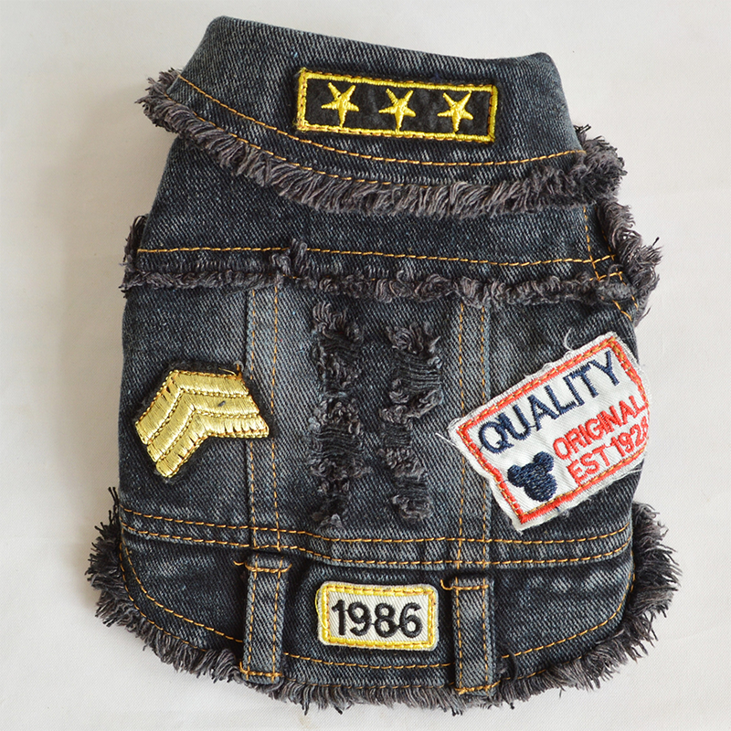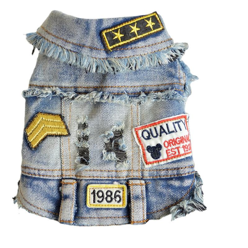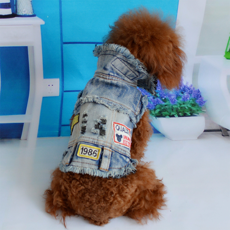 Marchio Logo personalizzato di alta qualità moda cane costume da ricamo gilet denim cane giacca di jeans vestiti per animali domestici per cucciolo piccolo