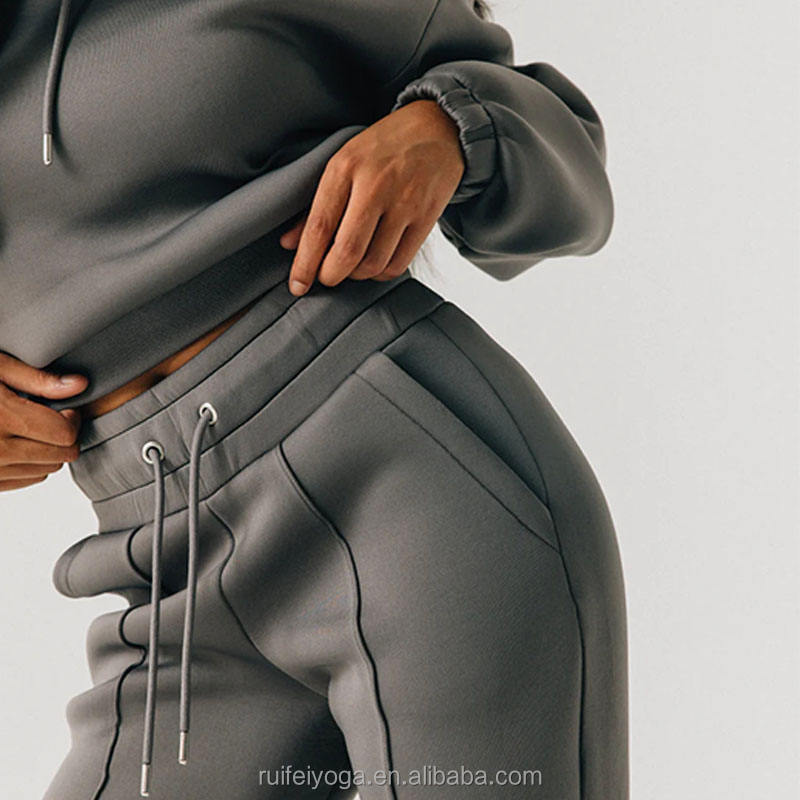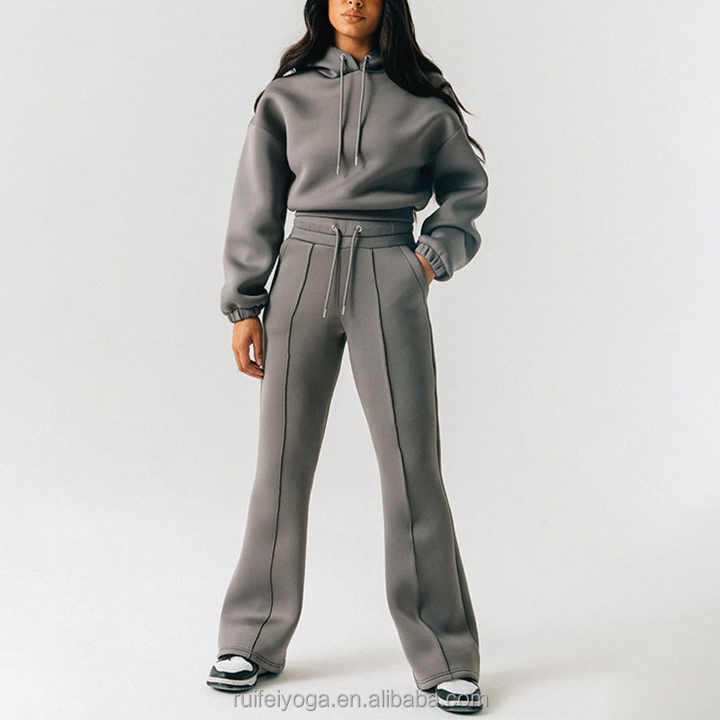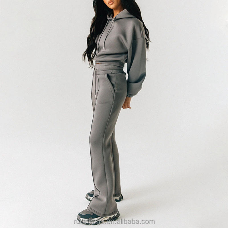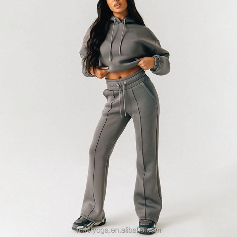 Tuta da Jogging Casual con Logo personalizzato felpa corta oversize con cappuccio e pantaloni da Jogging a gamba larga Set 2 pezzi Set da salotto Set da donna