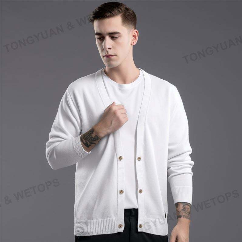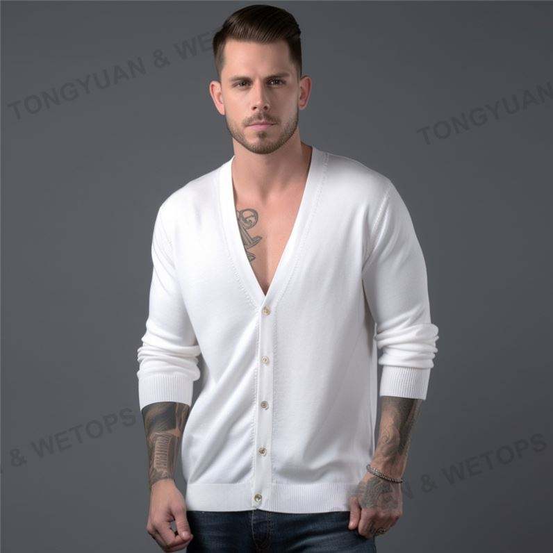 Abbigliamento personalizzato con Logo 2025 nuovo Design autunno essenziali maglione Cardigan bianco con scollo a V in cotone
