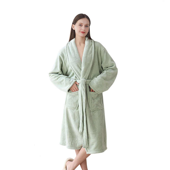 Accappatoio di colore Logo personalizzato da donna da uomo in pile di corallo spugna vestaglia caldo peluche accappatoio oversize con cappuccio lungo