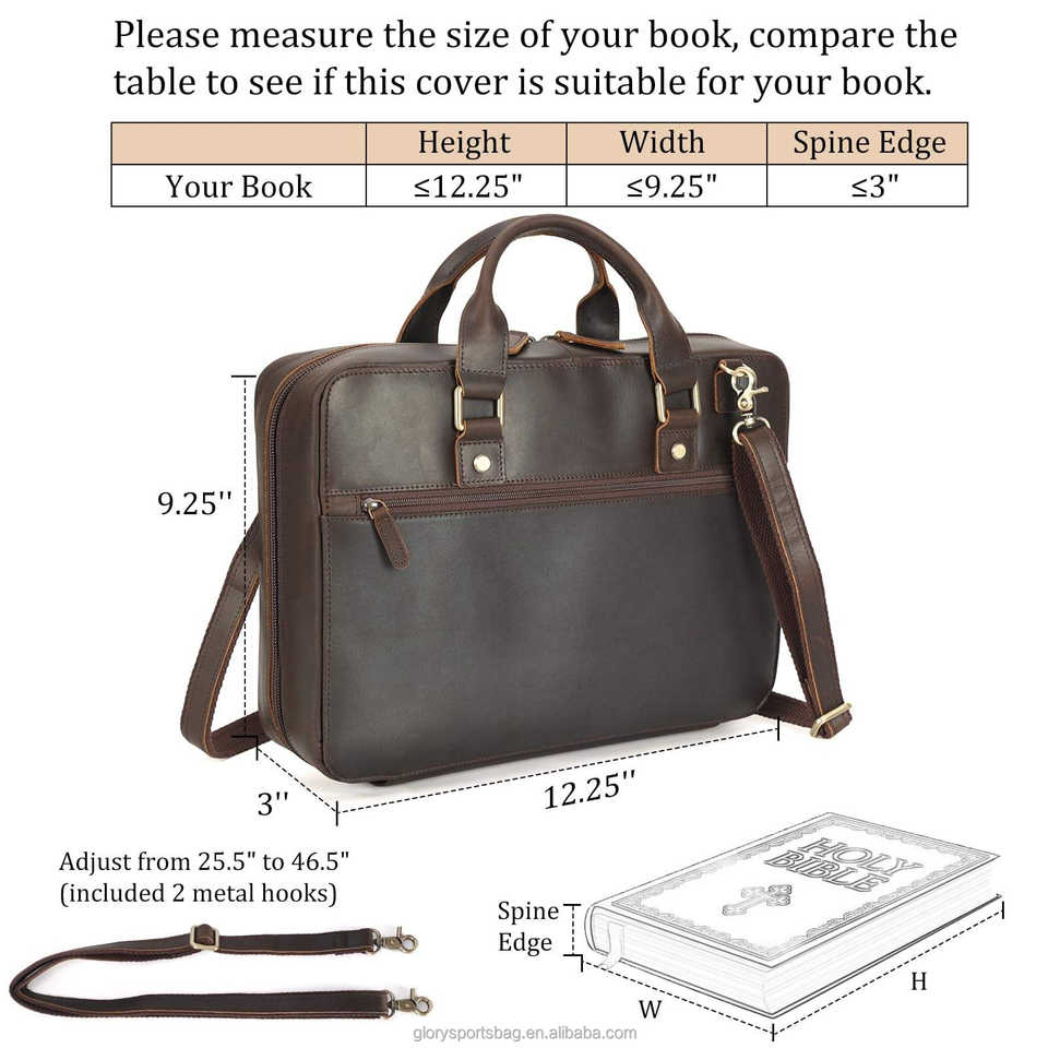 Custom Logo Crazy Horse Leather Bible Bag Laptop Bags Briefcase Genuine Leather Business Office Briefcase Bag