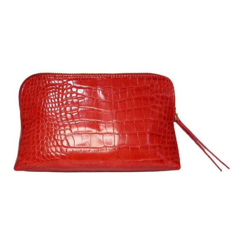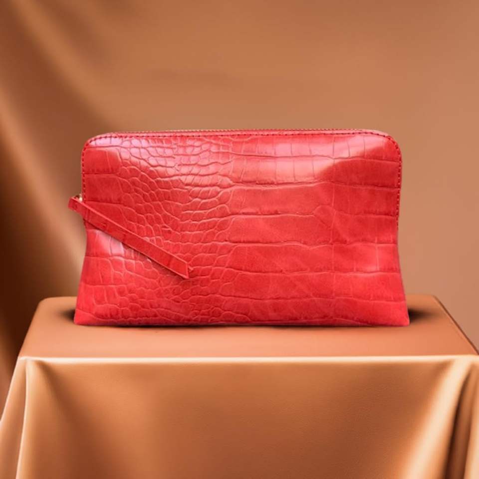 Borsa Cosmetica Personalizzata con Logo in Pelle di Coccodrillo, Elegante Organizer Rosso per il Trucco con Texture Vegana Premium Effetto Coccodrillo, Ampio Astuccio per Cosmetici