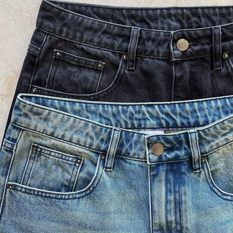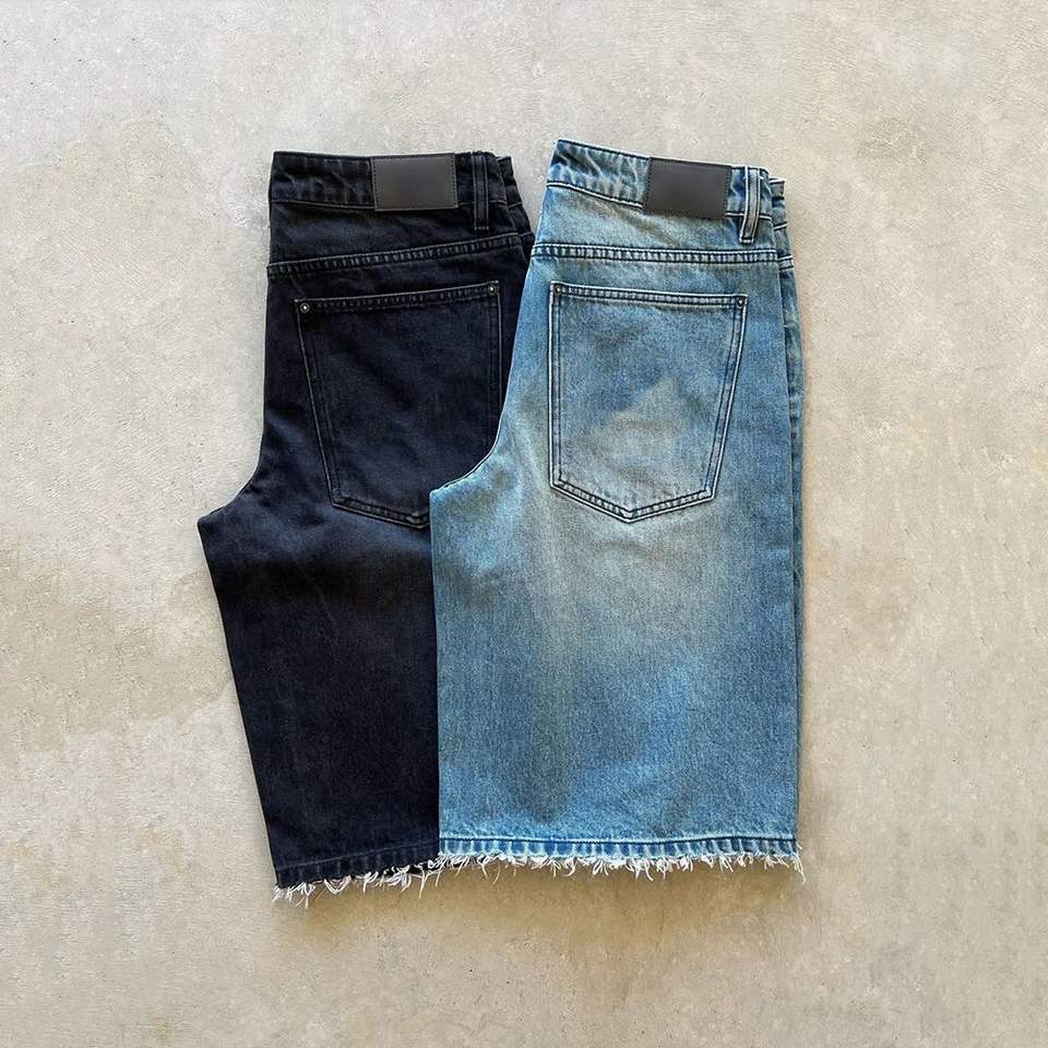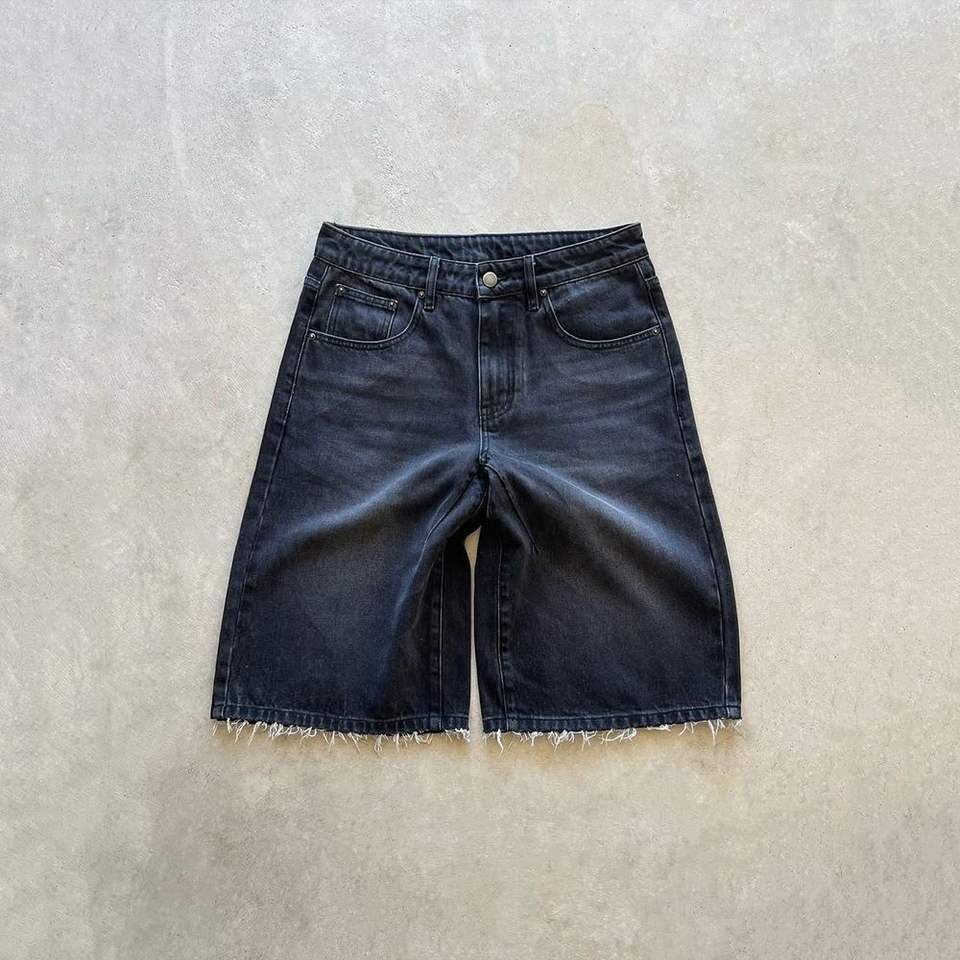 Shorts in Denim Vintage con Logo Personalizzato Ricamato, Oversize, Stile Streetwear, Effetto Consumato, Jeans Baggy da Uomo