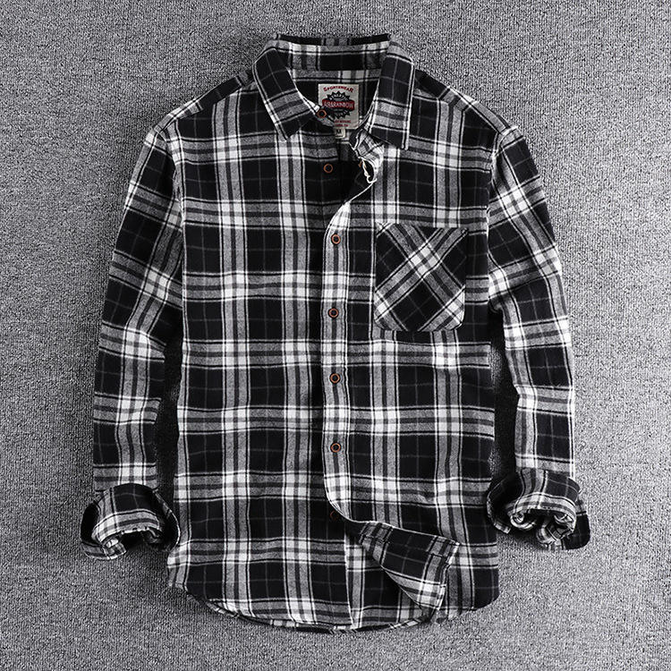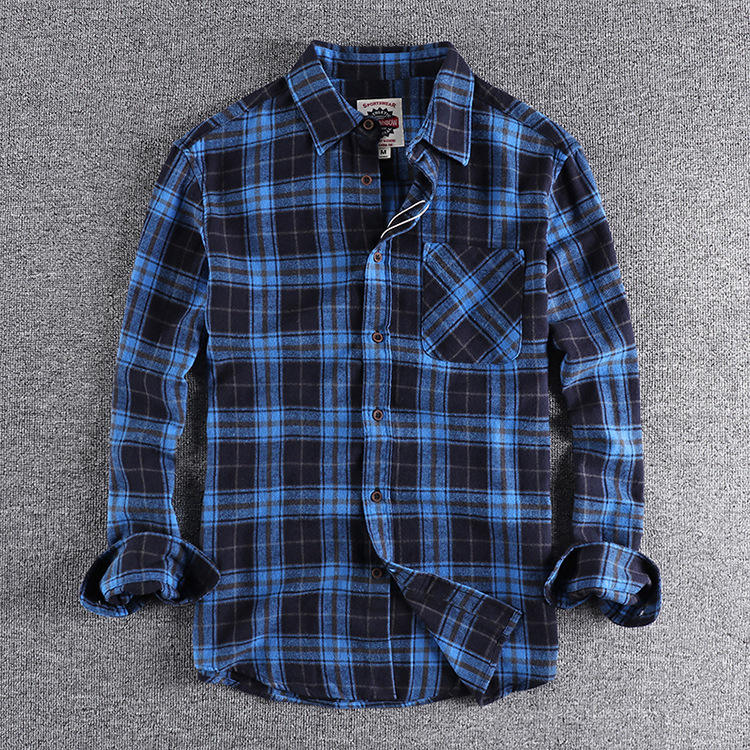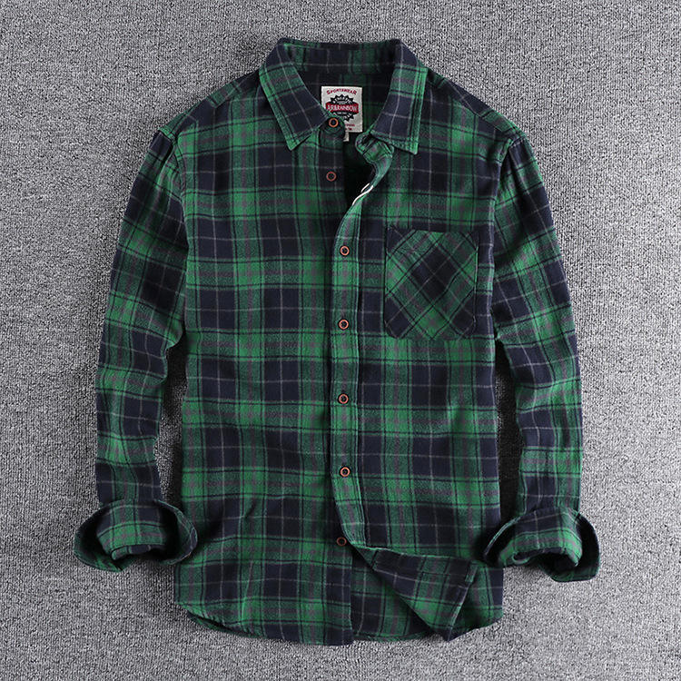 Logo personalizzato all'ingrosso della fabbrica confortevole camicia di flanella scozzese da uomo Casual a maniche lunghe in cotone 100%