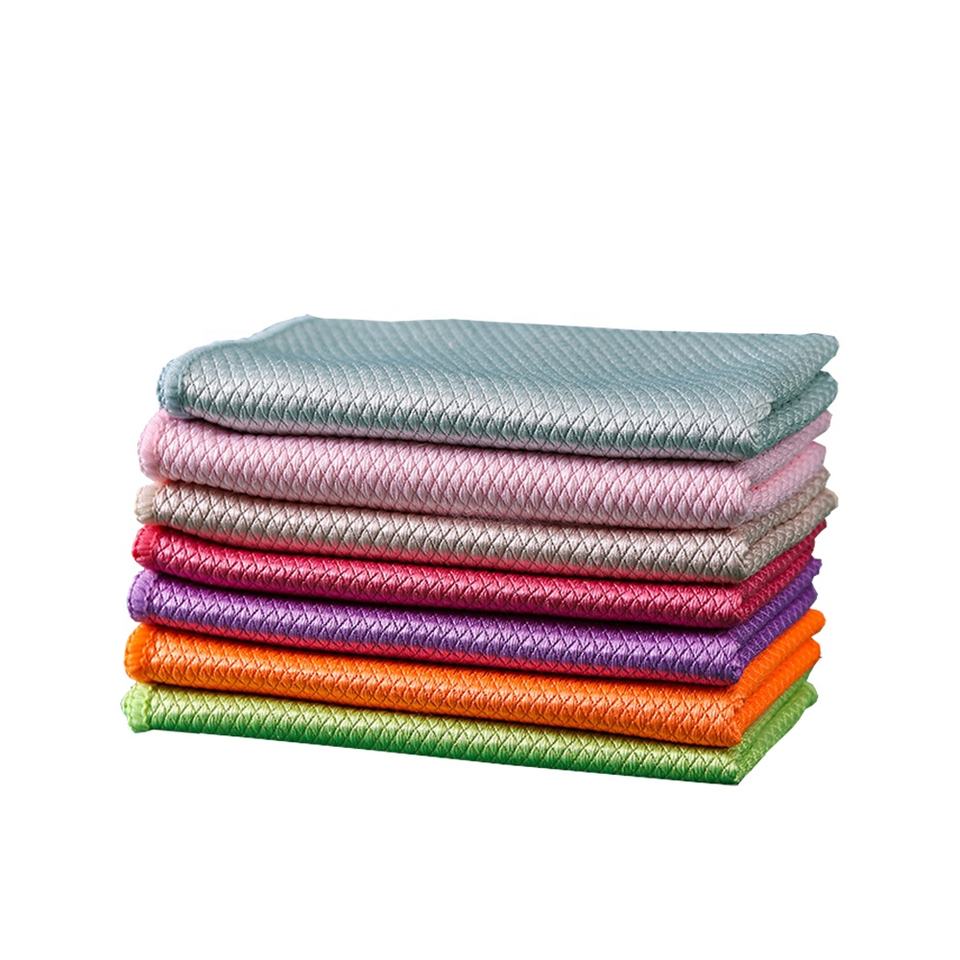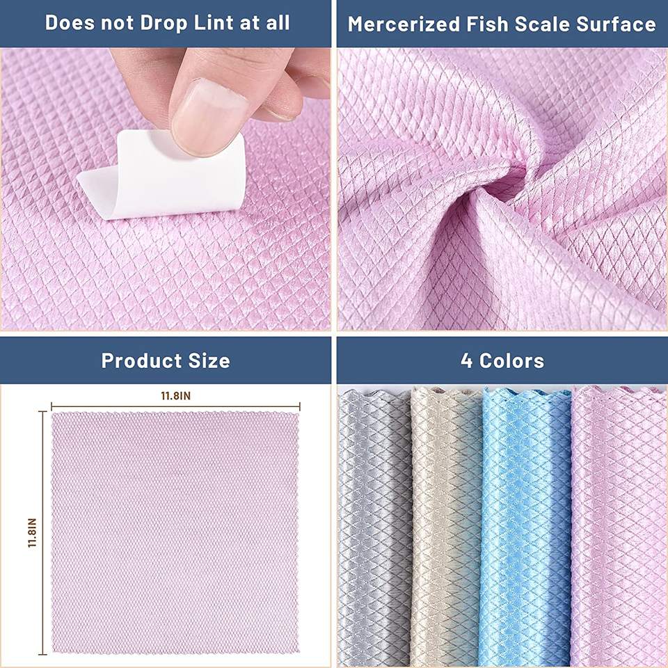 Panno in Microfibra a Scaglie di Pesce con Logo Personalizzato, Vendita Calda, Asciugamano Senza Pelucchi per Lucidatura Vetri, Uso in Cucina e Lavaggio Piatti