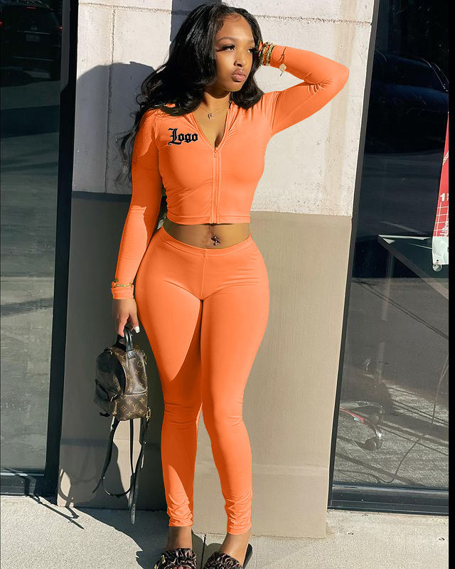 Custom Logo Gym Fitness Sets 2 Pieces Jogging Sets Joggers Tight Fitted Suit Women's Set Full Zip Hoodie Sweatpants Tracksuit