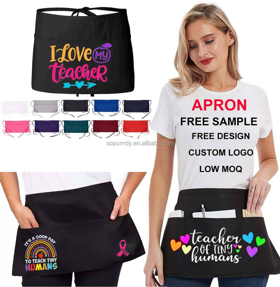 Logo personalizzato mezzo grembiule in vita personalizzato crea il tuo grembiule corto stampato per cucina BBQ grill Chef insegnante grembiule uomo donna