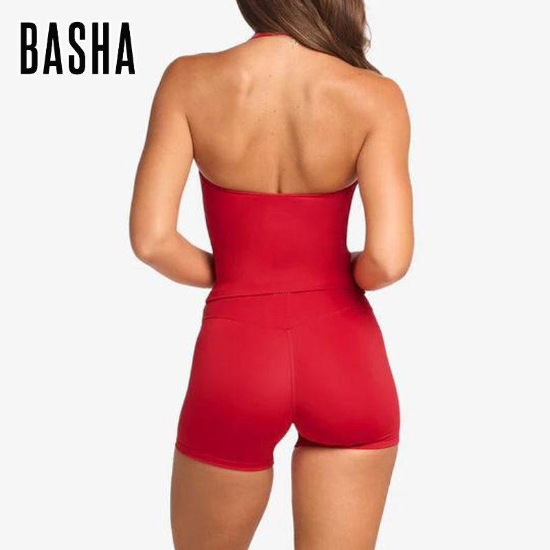 Shorts Crop Top con Logo personalizzato Set di allenamento Sexy per palestra completi da donna ad asciugatura rapida nudo sensazione di Yoga Set