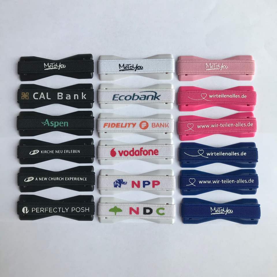 Custom Logo impugnatura a mano tracolla, Smart Phone tessuto impugnatura porta dita, manopole appiccicose per telefono cellulare