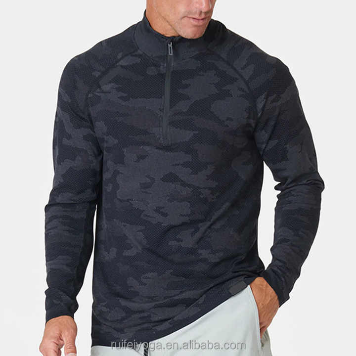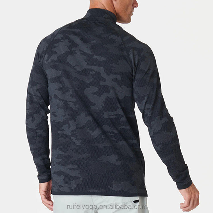 Logo personalizzato ad alte prestazioni asciugatura rapida Slim Fit traspirante traspirante Camo nero quarto Zip maglia a maniche lunghe per gli uomini