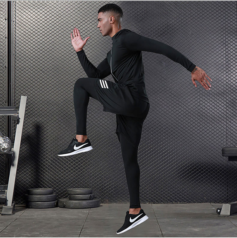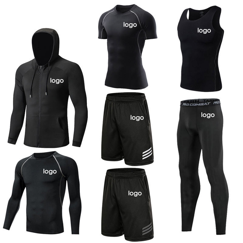 Set 7 Pezzi Abbigliamento Sportivo da Uomo con Logo Personalizzato, Giacca, Felpa, Maglietta Compressiva ad Asciugatura Rapida, Leggings, Abbigliamento Fitness di Alta Qualità