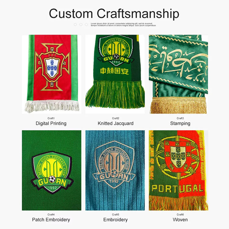 Sciarpa Jacquard in Acrilico con Logo Personalizzato per Tifosi di Squadre di Calcio, Souvenir per Grandi Eventi all'Ingrosso
