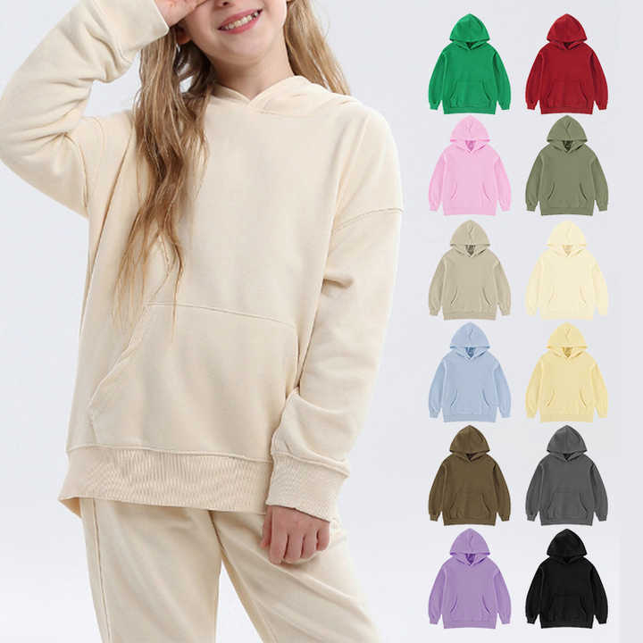 Custom Logo Kids Plain Hooded Sweatshirts Casual Loose Fleece Girl'S Drop Shoulder Oversized Pullover Hoodies