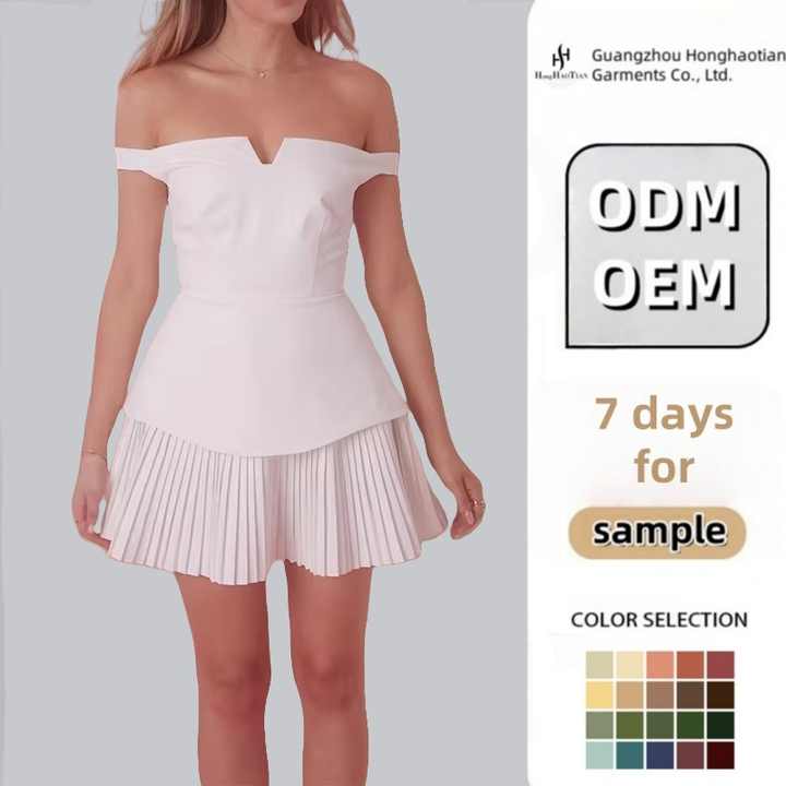 Logo personalizzato signora elegante vestito estivo aderente senza spalline a spalline plissettato Mini per donne abbigliamento Casual Online
