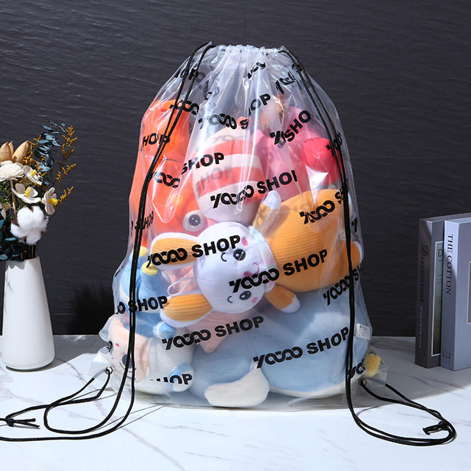 Logo personalizzato di grande capacità chiaro orso peluche bambola PE trasparente con coulisse zaino riutilizzabile e richiudibile per uso cuscino
