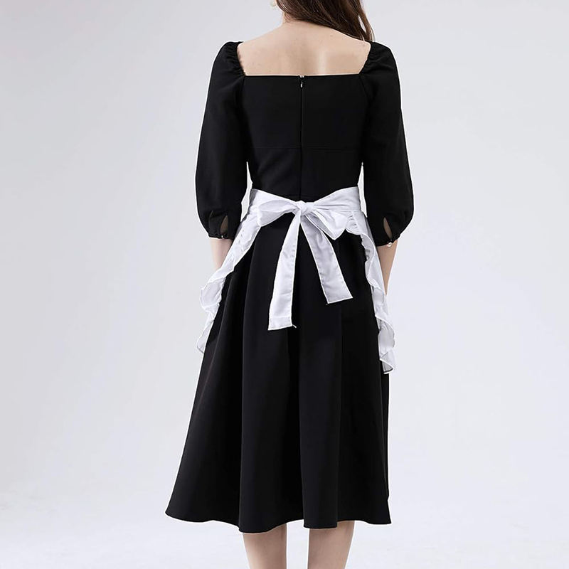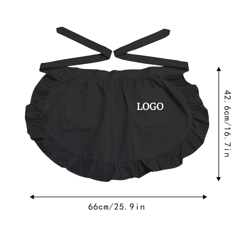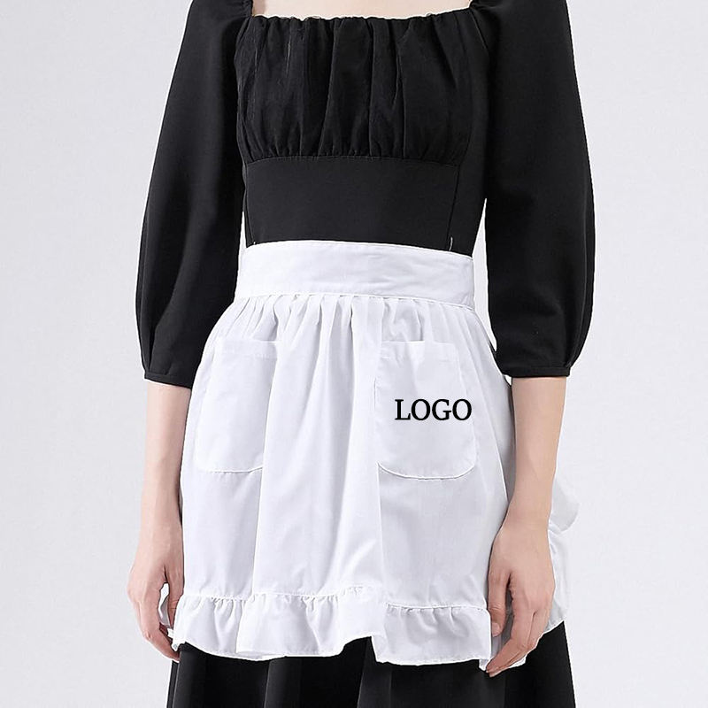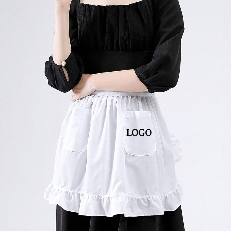 Grembiule da Cucina Leggero in Poliestere con Logo Personalizzato, Stile Vintage per Camerieri e Cameriere, Bianco e Nero con 2 Tasche