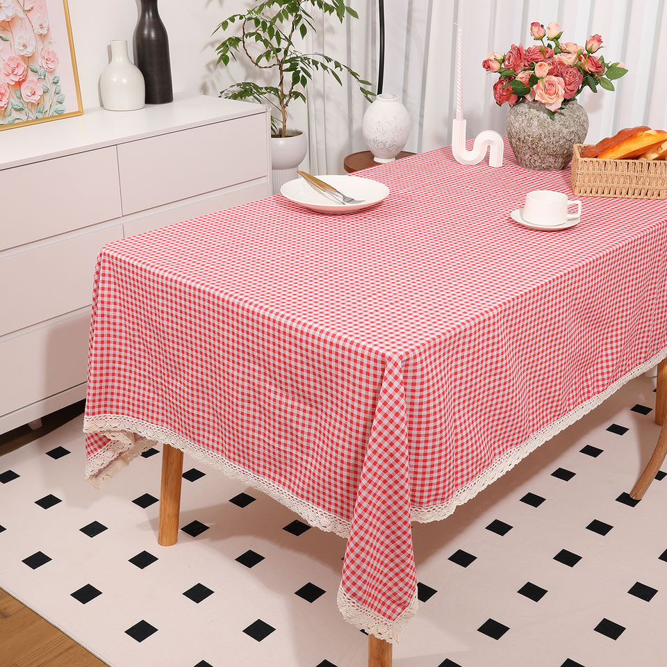 Tovaglia arricciato rettangolo di lino personalizzato con Logo in lino spesso tovaglia a scacchi per sala da pranzo