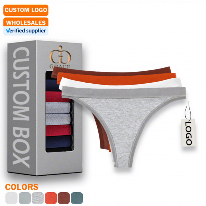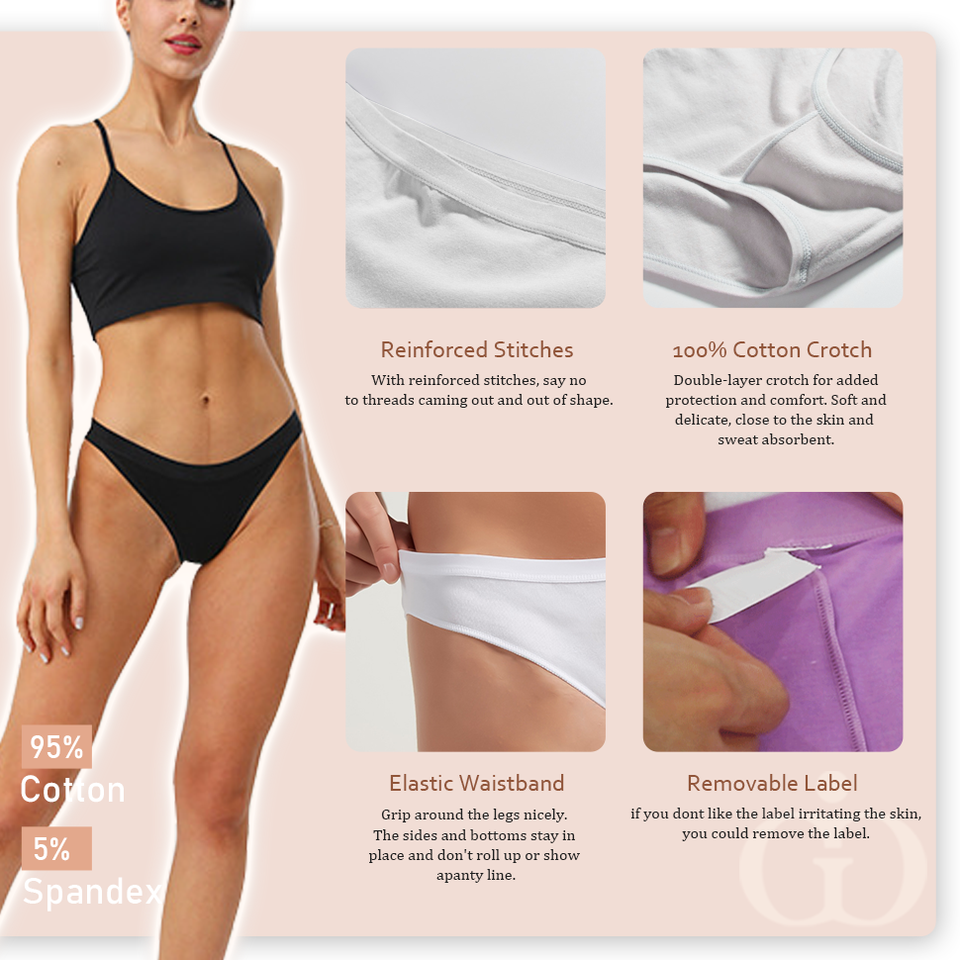 Tanga Donna in Puro Cotone a Vita Bassa con Logo Personalizzato, Tinta Unita, Bikini T-Back, per Yoga e Sport, Perizoma Brasiliano, Intimo Femminile