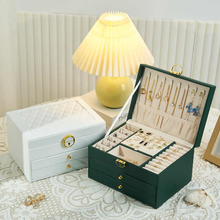 Custom Logo lusso squisito cuoio PU tre strati di grande capacità portagioie squisita grande custodia