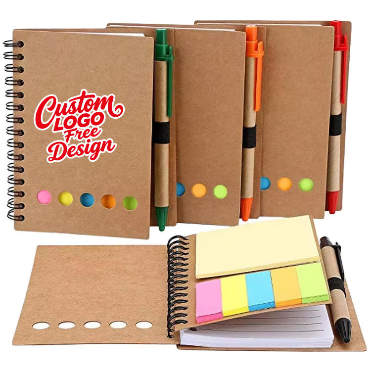 Blocco Note Adesivo Personalizzato con Logo, Quaderno in Carta Kraft, Mini Taccuino Personalizzato con Penna e Note Adesive