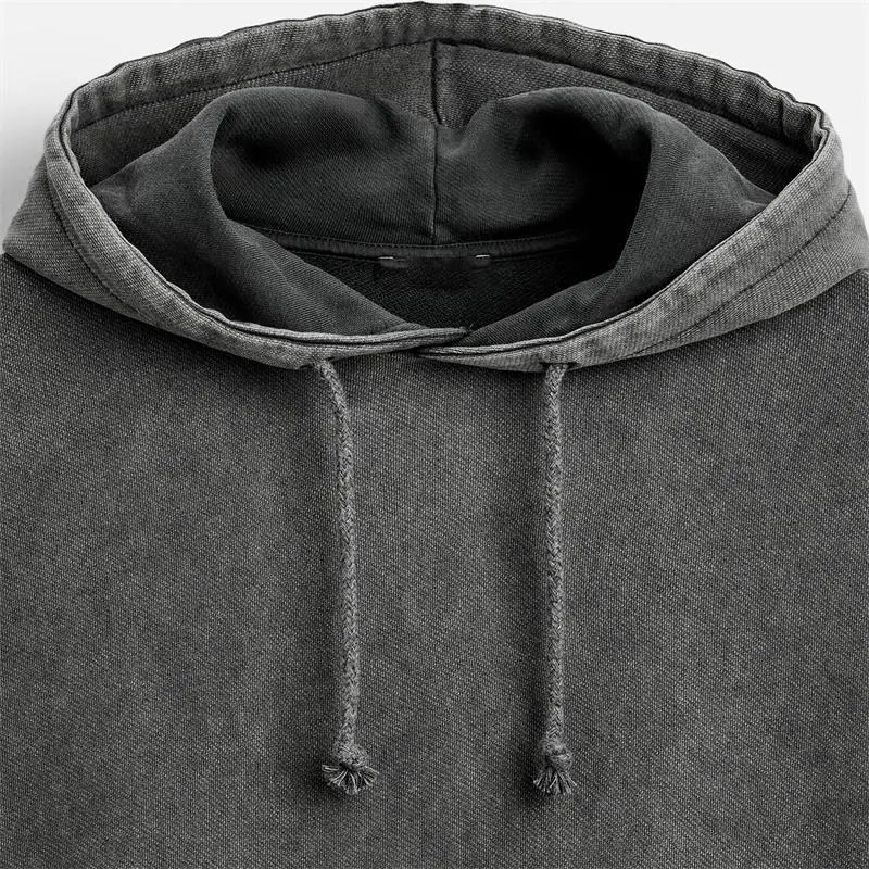 Felpe Senza Maniche da Uomo con Logo Personalizzato, Stile Vintage Lavaggio Acido Nero con Bordi Tagliati, Streetwear Effetto Vissuto