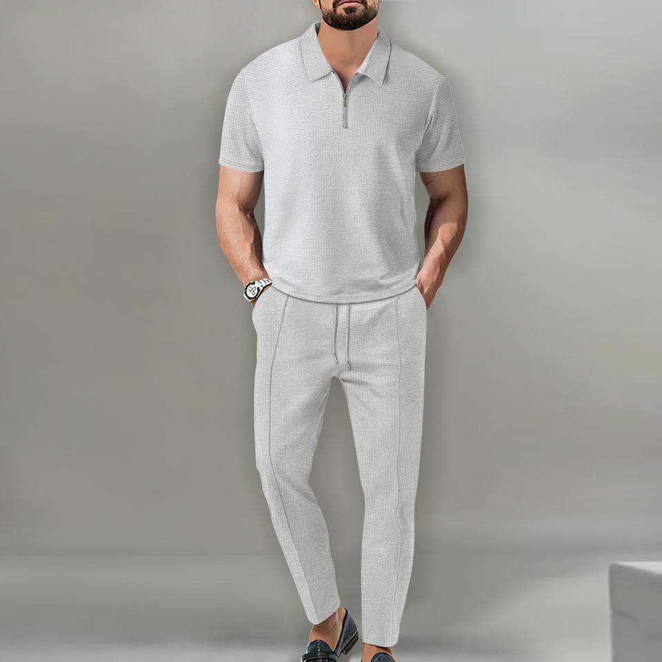 Logo personalizzato uomo Casual Street Wear mezza Zip Polo pantaloni lunghi due pezzi set da uomo estate Waffle 2 pezzi