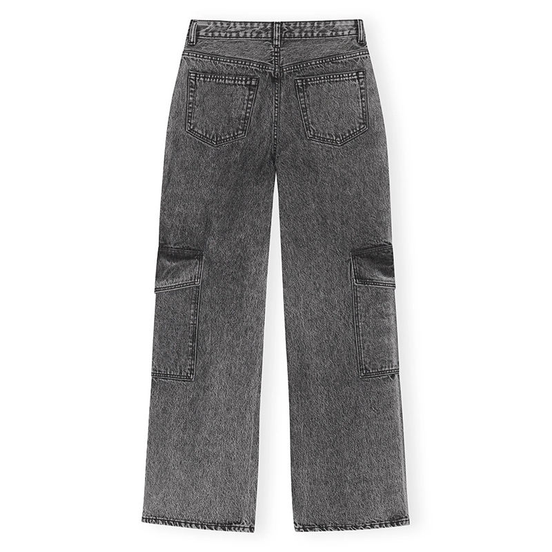 Jeans Cargo Vintage da Donna con Logo Personalizzato, Vita Media, Tasche a Patta, Traspiranti, Grigio, Vestibilità Dritta, Streetwear, Decorazione con Bottoni, Sexy e Comodi