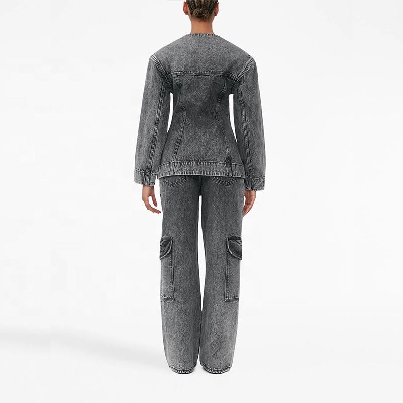 Jeans da Donna Grigio Vintage con Logo Personalizzato, Vita Media, Tasche con Patta, Traspiranti, Ecologici, Lavabili, Vestibilità Larga e Dritta