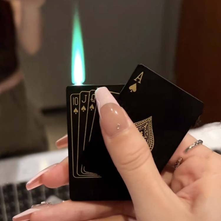 Accendino a Torcia Mini Personalizzato con Logo, Antivento, a Gas Butano, in Metallo, a Forma di Carte da Poker, Ricaricabile, per Regalo di Natale