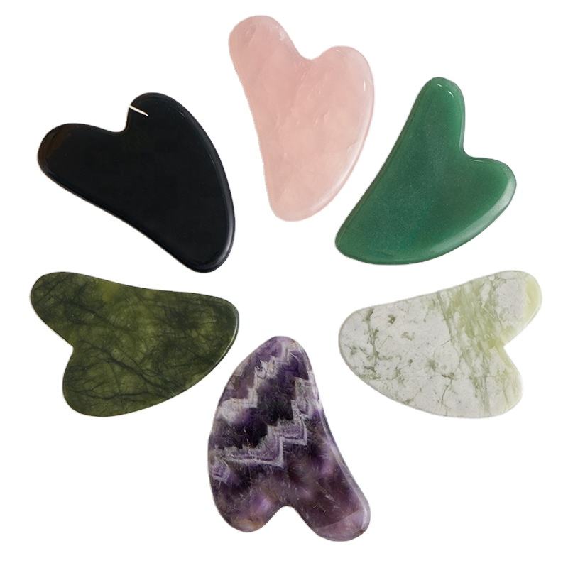 Logo personalizzato in cristallo naturale Guasha raschiatura strumento di massaggio a forma di cuore viso Gua Sha pietra per l'applicazione del viso
