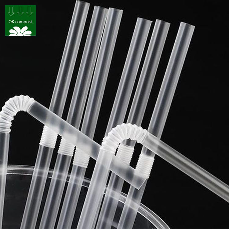 Logo personalizzato PLA naturale 100% compostabile biodegradabile plastica usa e getta dritto flessibile cannuccia trasparente per bere freddo